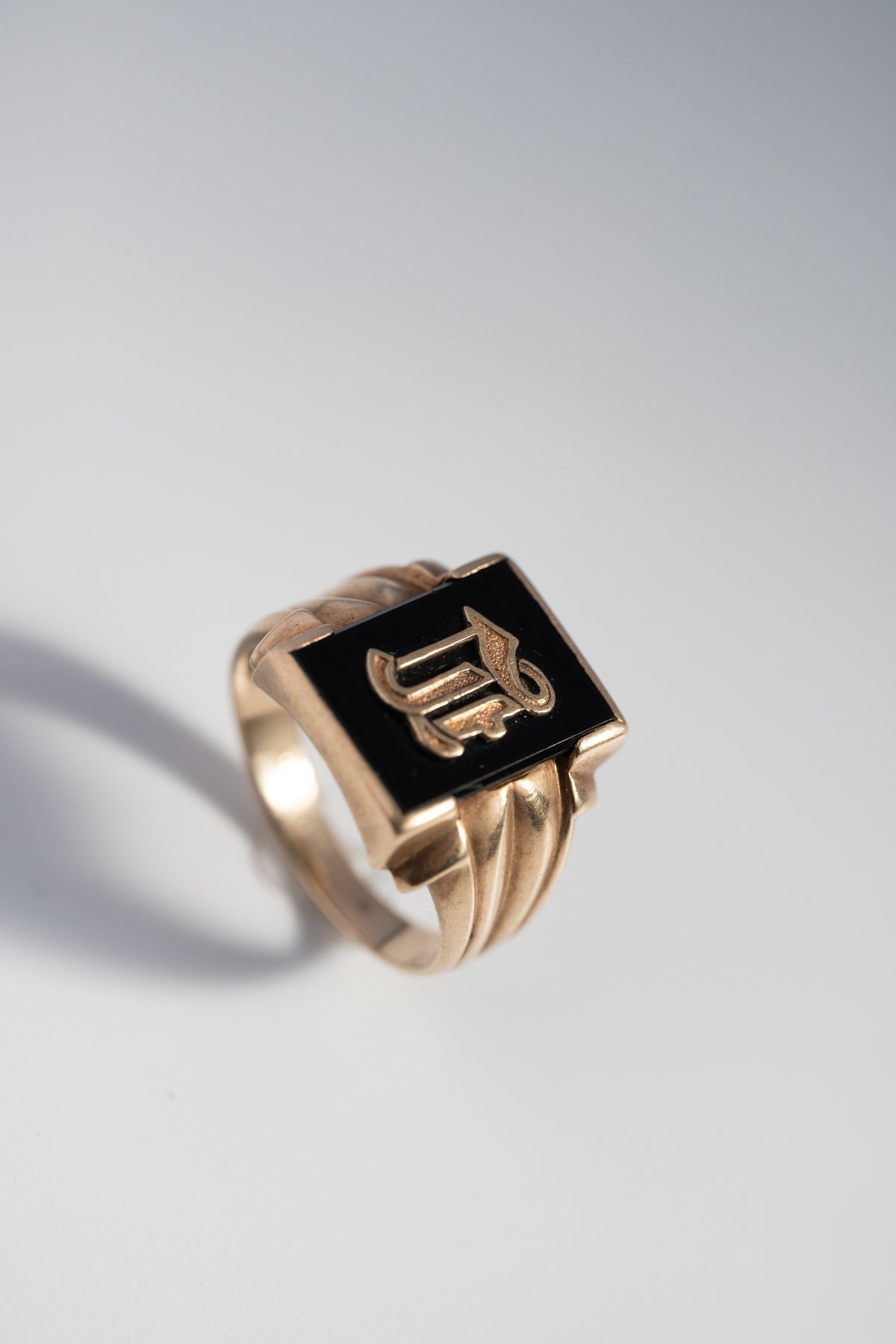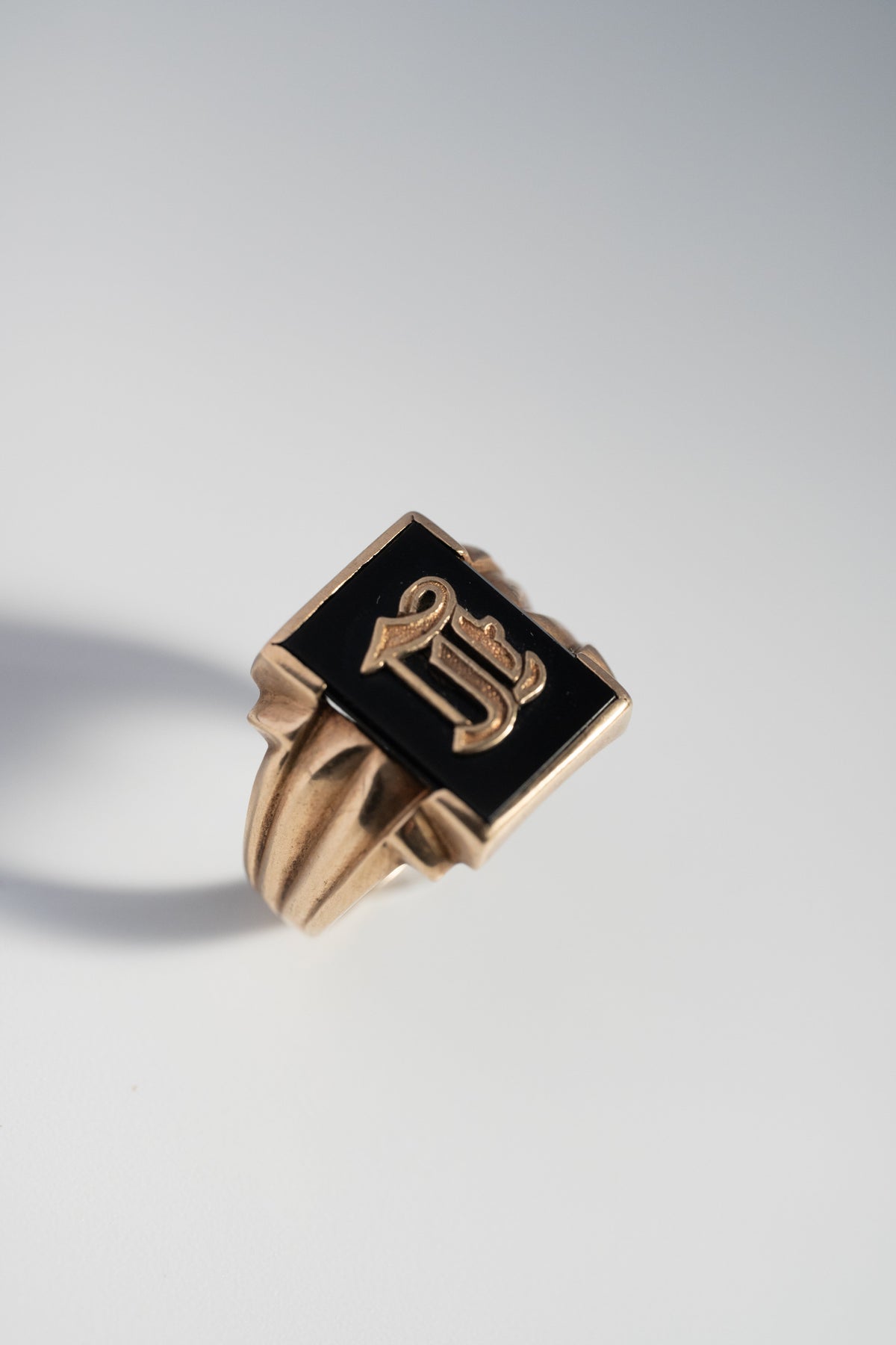 10K 1950s ヴィンテージ・ブラックオニキス・シグネットリング(イニシャル "L")