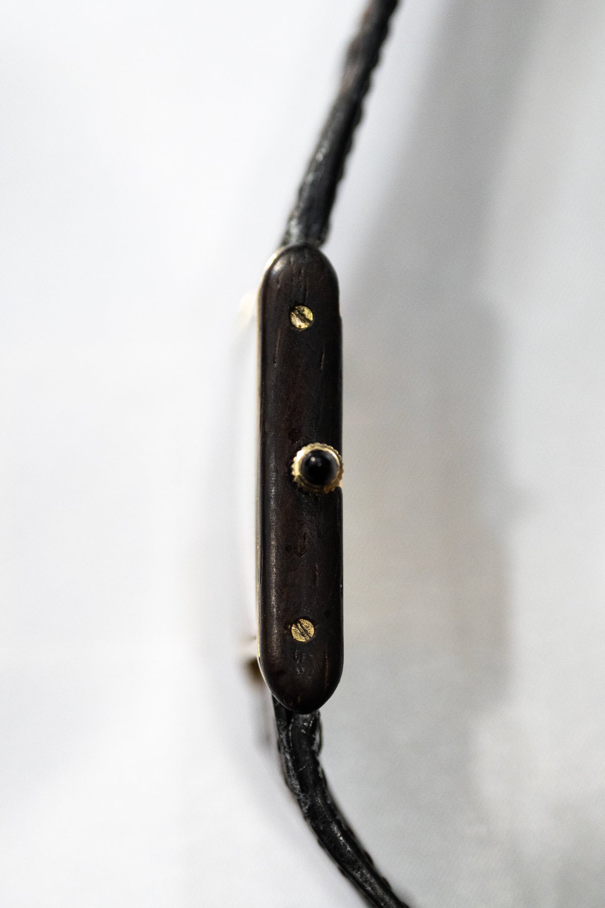 マカサウッドの特徴としては、非常に硬く、黒と焦げ茶の縞模様(しまもよう)が特徴的で、実際にこちらの個体もそのような縞模様の美しい部分が使われています。